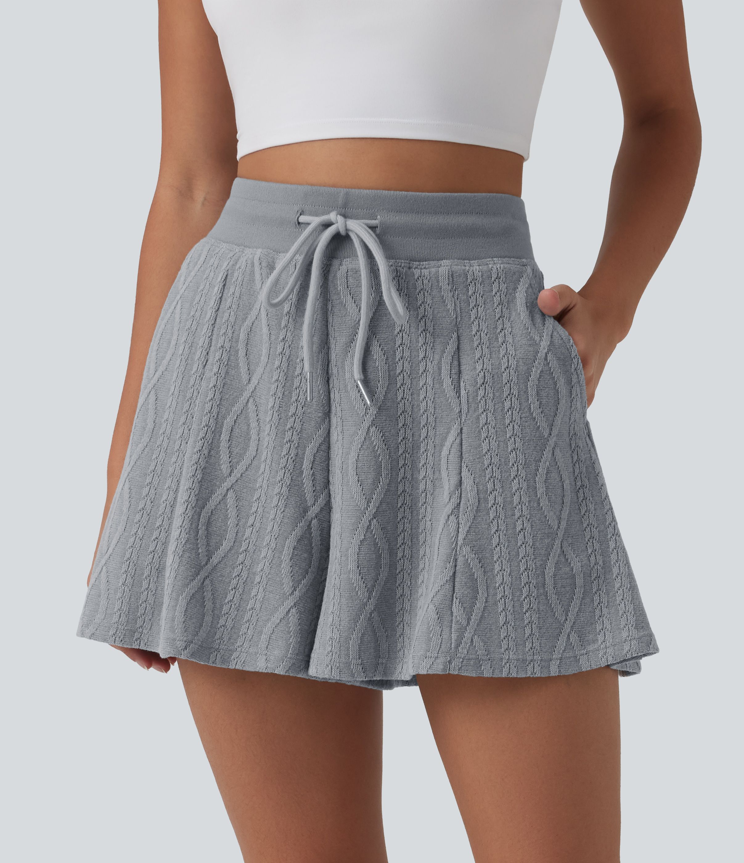Lässige Strick-Shorts mit hohem Bund, Seitentaschen und Kordelzug - 7,6 cm
