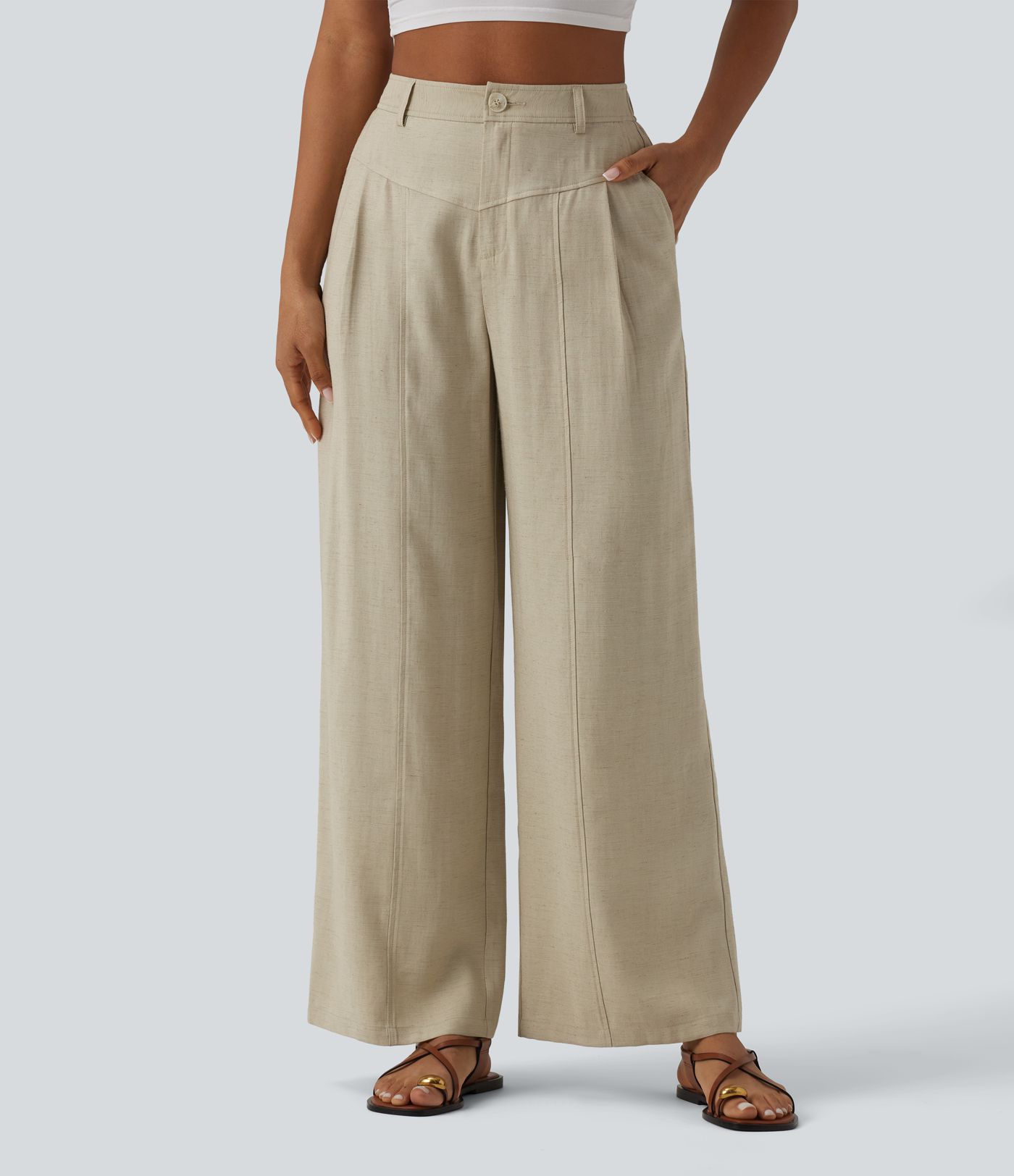 Lässige Leinenhose mit hohem Bund und Taschen