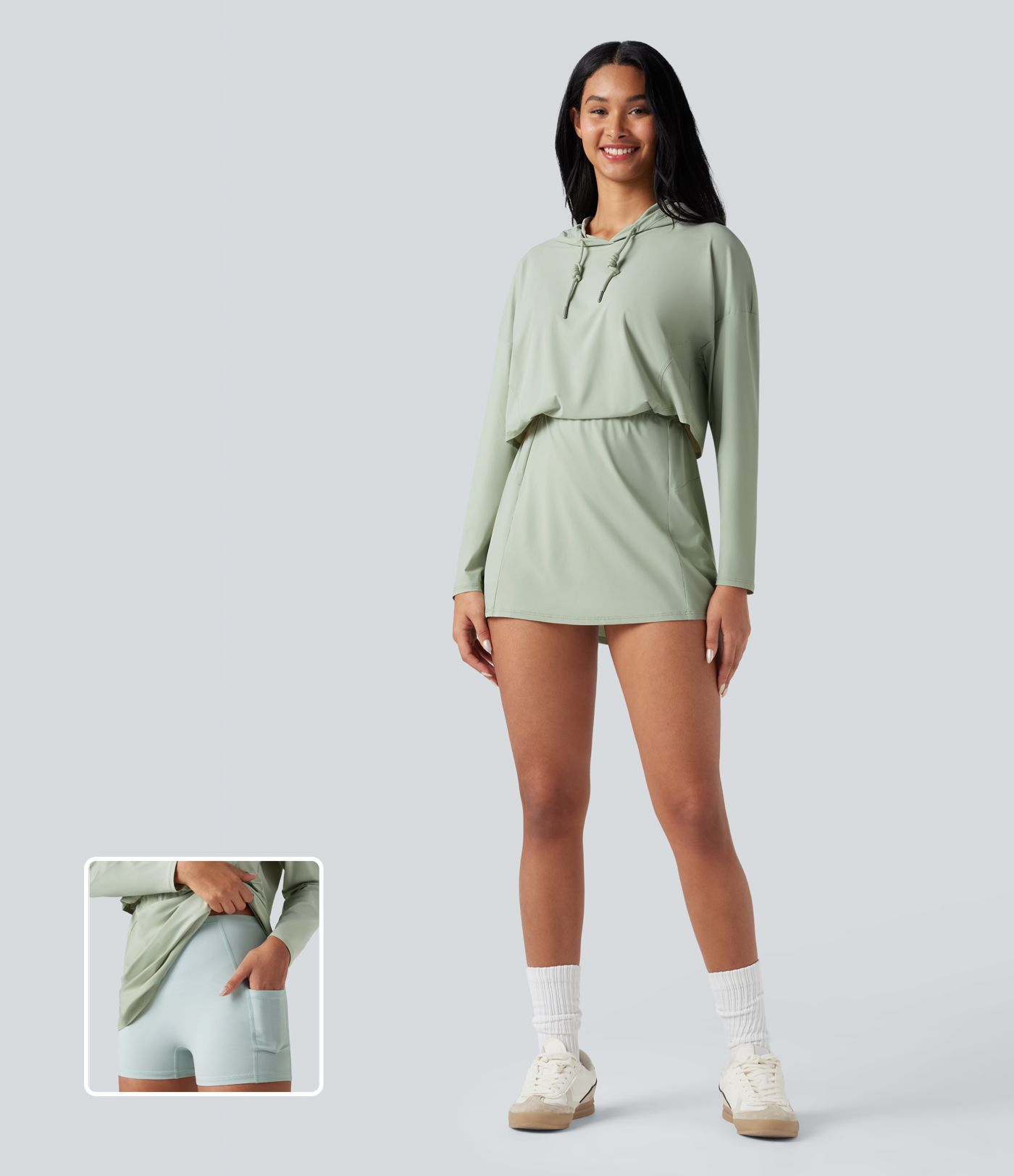 Lässiges, 2-teiliges Kleid mit Kapuze, Seitentaschen und langen Ärmeln - schnelltrocknend