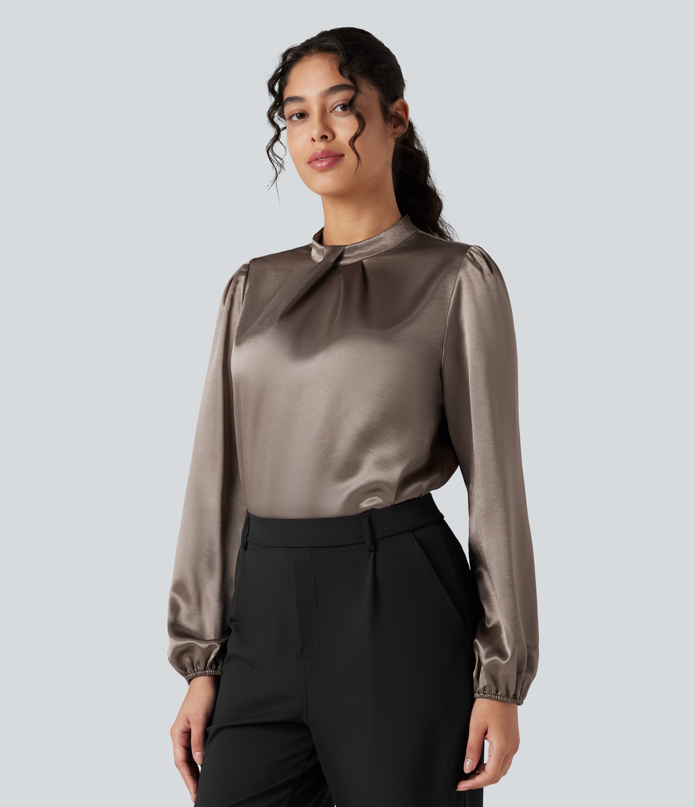 Arbeitsbluse aus Satin mit Schlüsselloch-Rücken und Puffärmeln