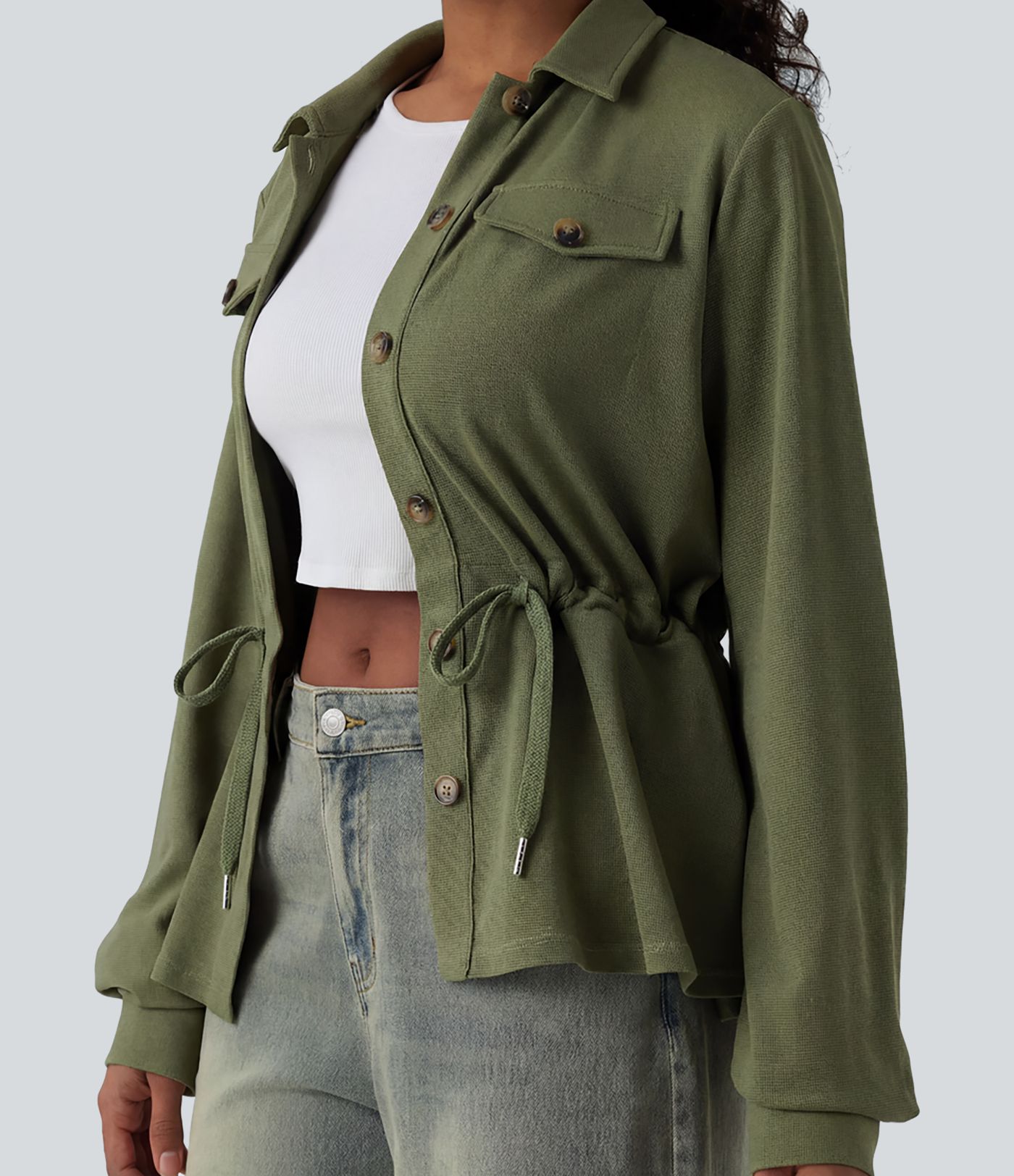 Lässige Jacke mit langen Ärmeln, Kordelzug und Waffelstruktur