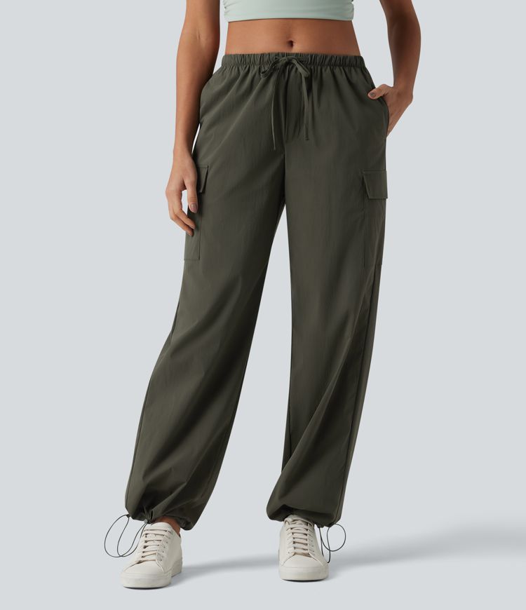 Lässige Cargohose mit mittelhohem Bund, mehreren Taschen, Kordelzug und geradem Bein