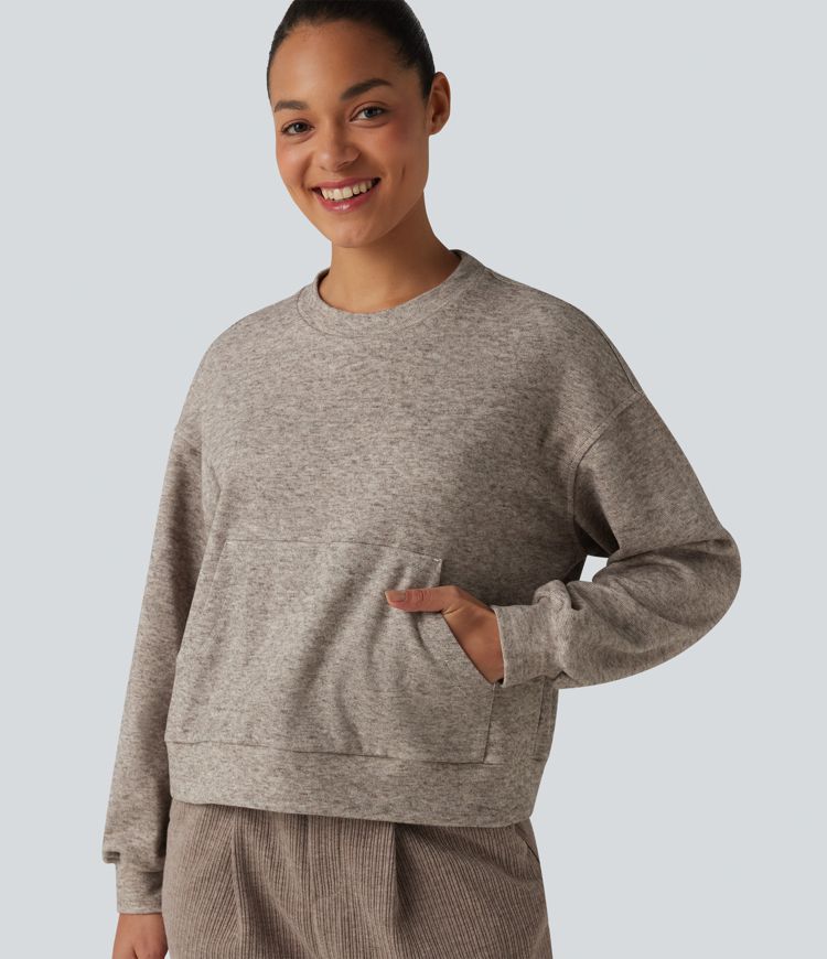 Lounge-Top mit Rundhalsausschnitt, Kängurutasche und langen Ärmeln