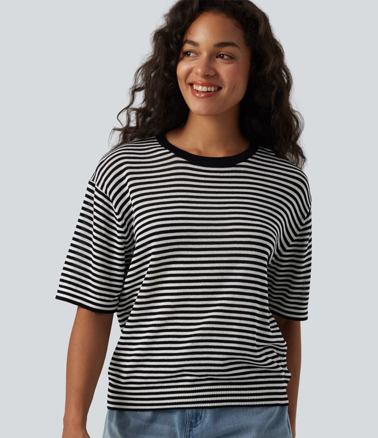Casual linen-look sweater with a round neck and short sleeves