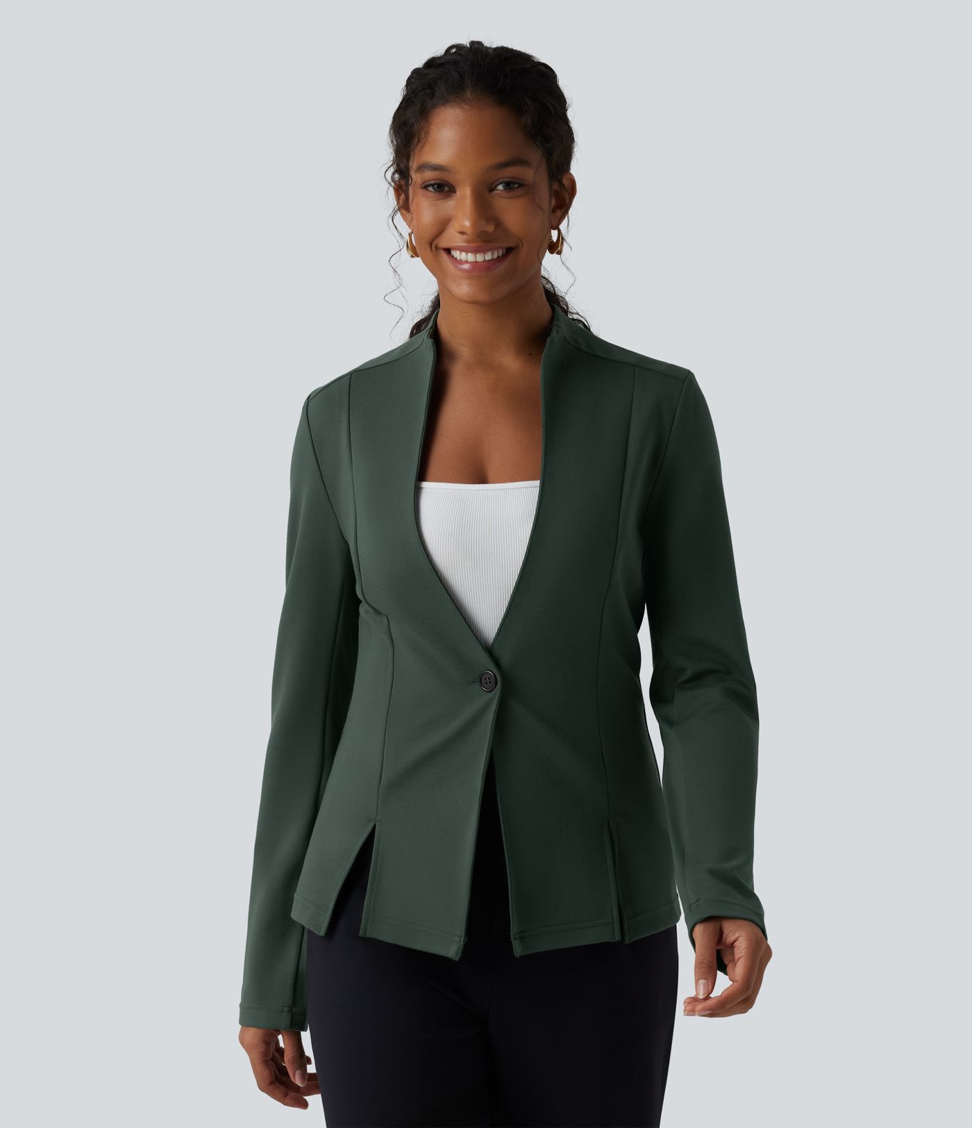 SculptKnit - Arbeits-Blazer mit V-Ausschnitt und langen Ärmeln