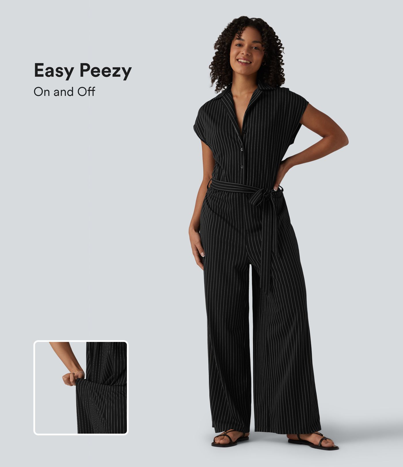 Arbeits-Jumpsuit mit Seitentaschen, kurzen Ärmeln, Streifen, Cool-Touch und Gürtel - Easy Peezy Edition
