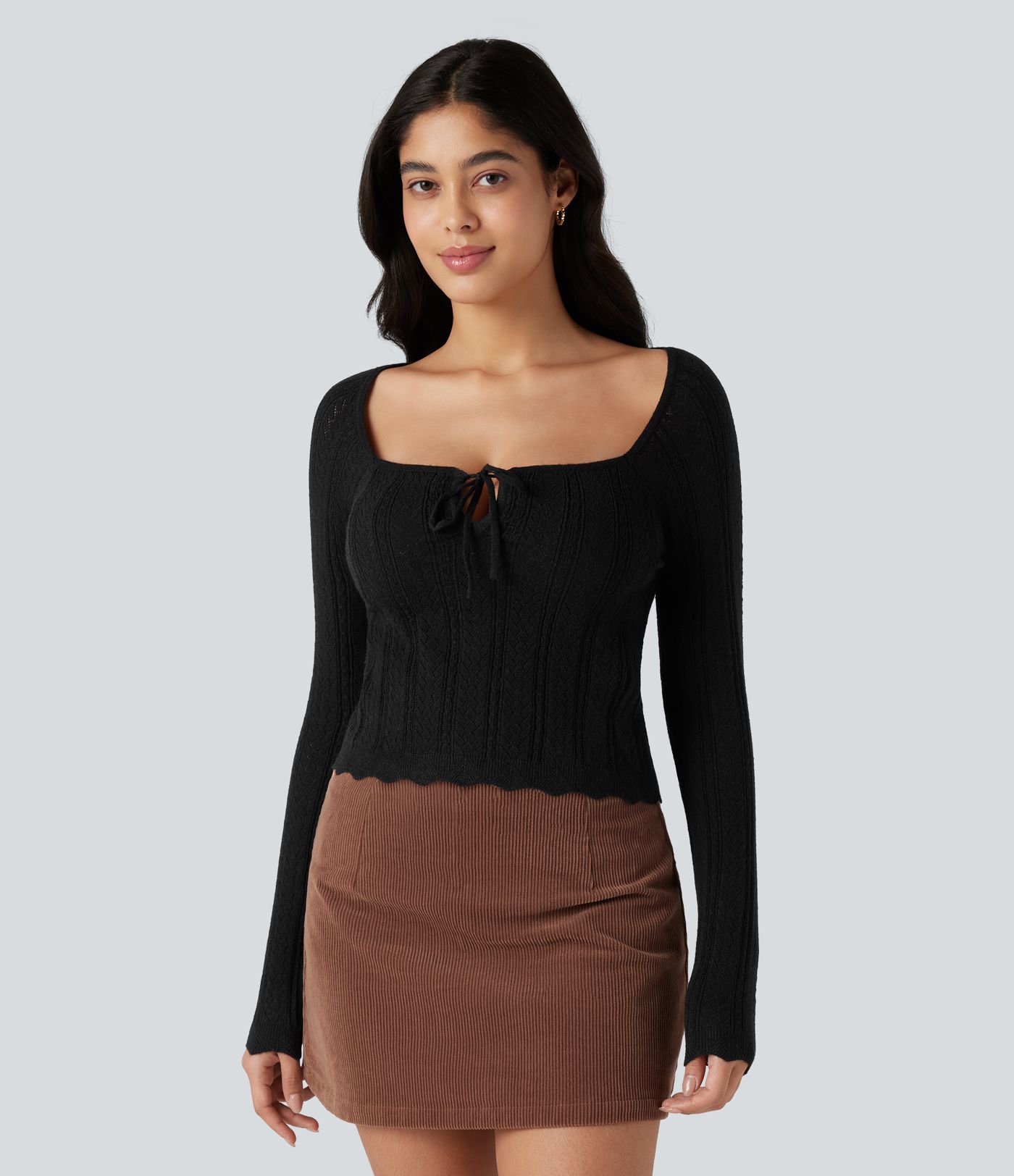 Lässiger Pullover mit quadratischem Ausschnitt, langen Ärmeln und Muschelsaum