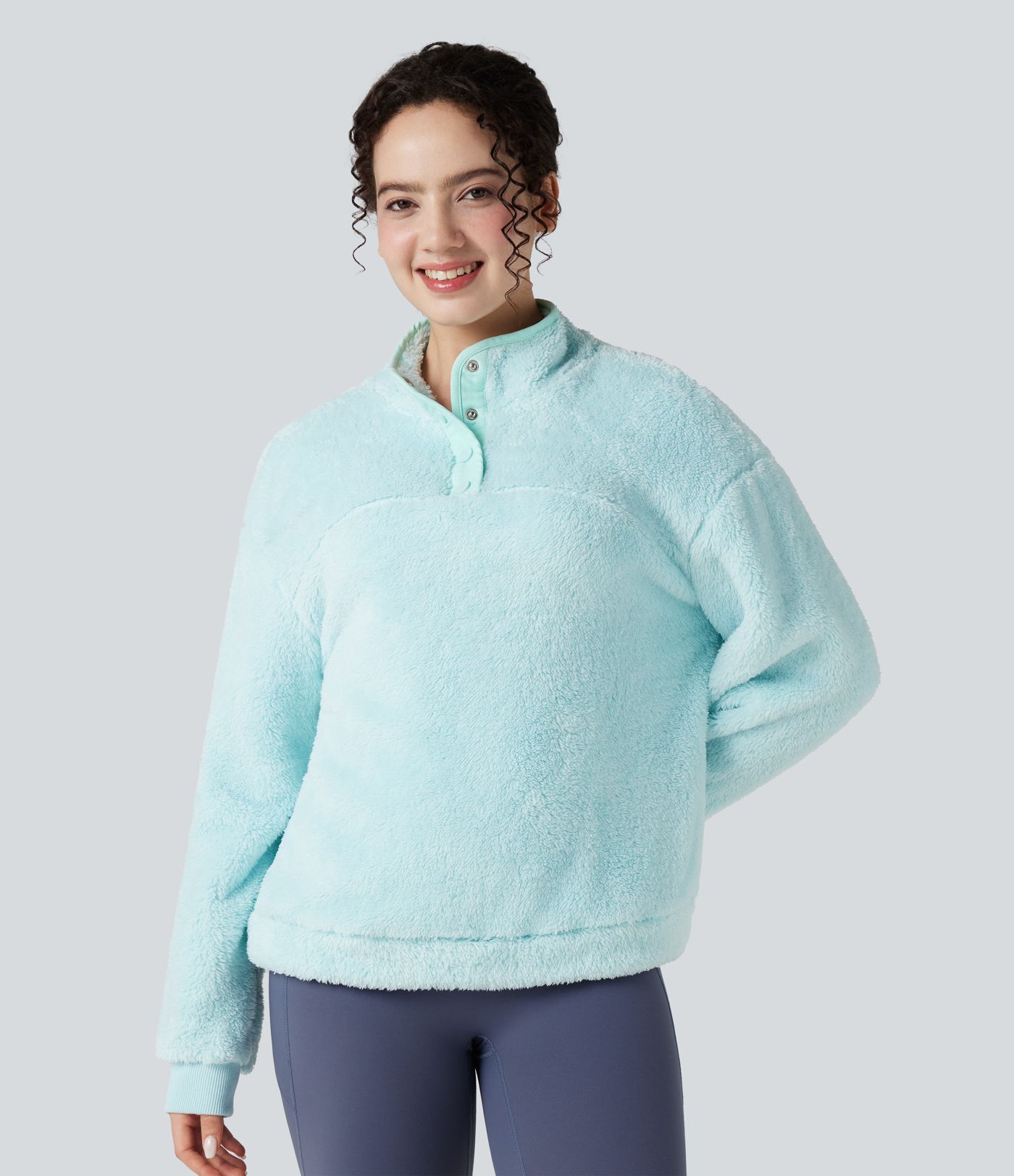 Lässiges Fleece-Sweatshirt mit Stehkragen und Knöpfen
