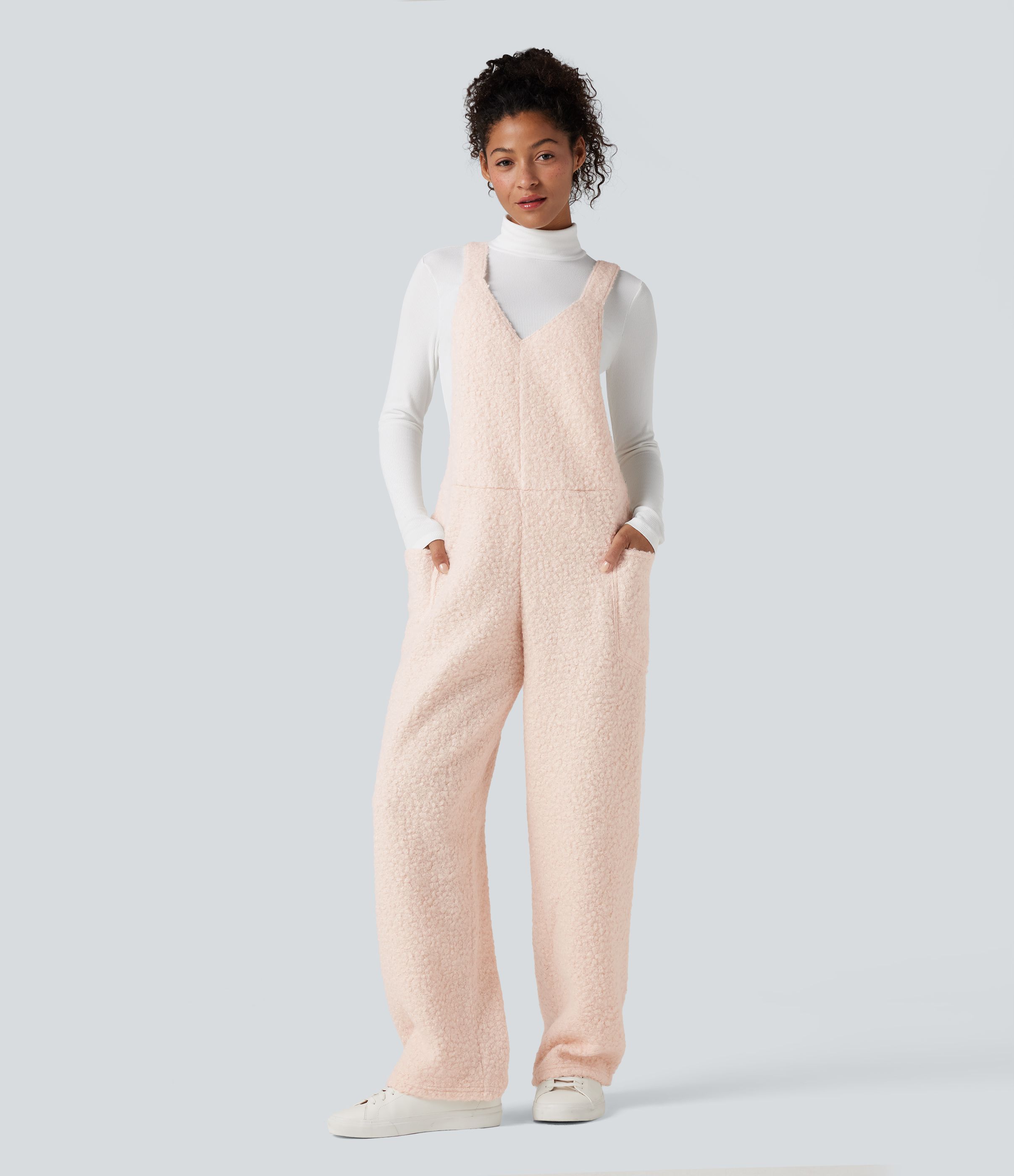 Lässiger Teddy-Overall mit V-Ausschnitt und Seitentaschen