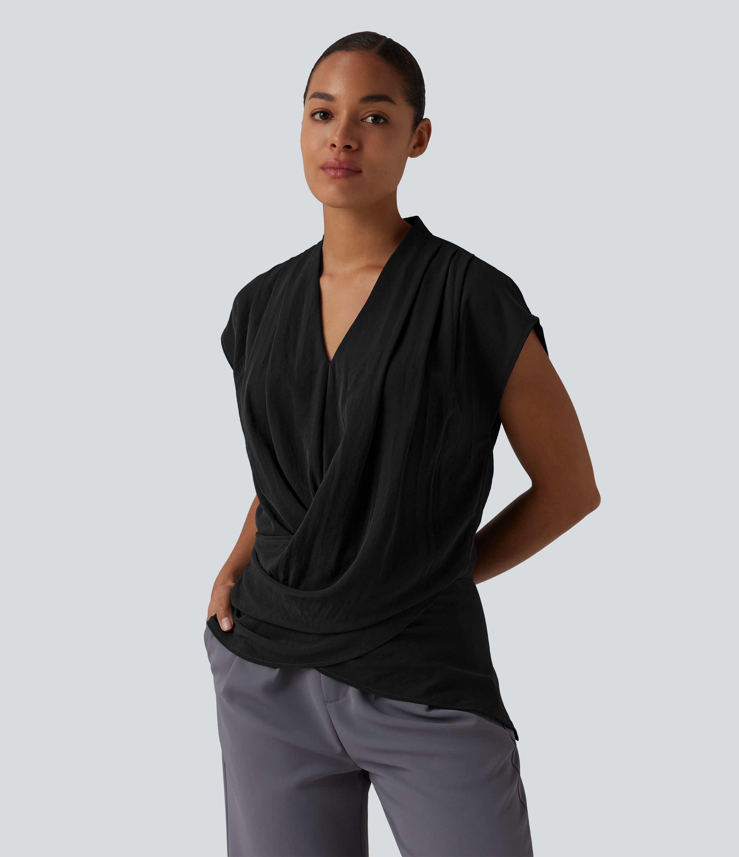 Ärmellose Wickel-Arbeits-Bluse mit V-Ausschnitt